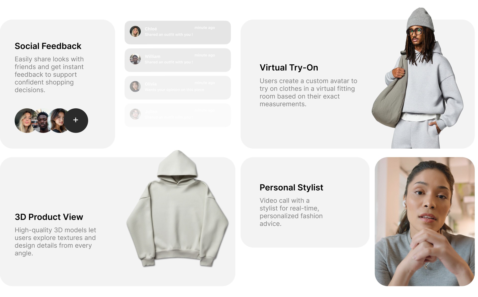 Easily share looks with friends and get instant feedback to support confident shopping decisions.